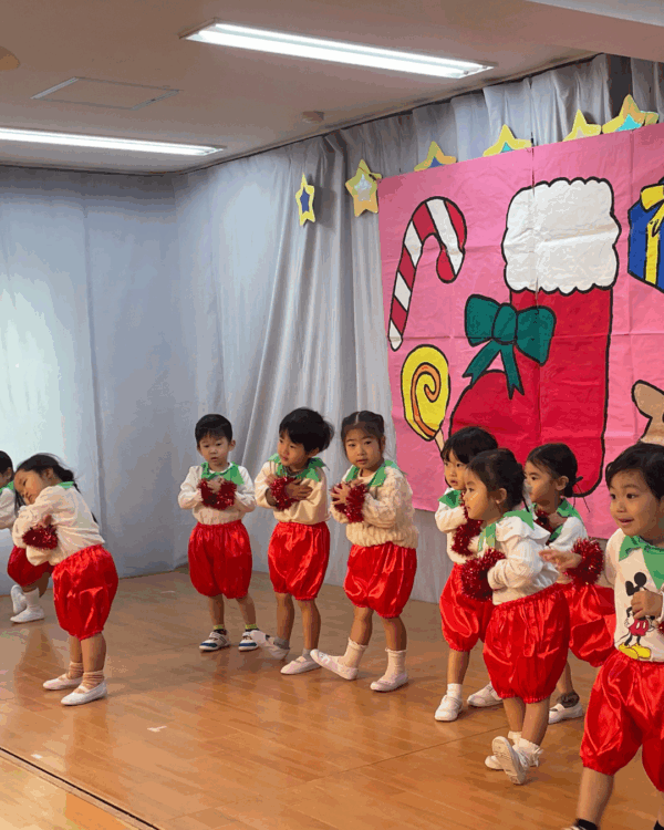 2歳児、年少組は可愛らしいダンスを披露してくれました。