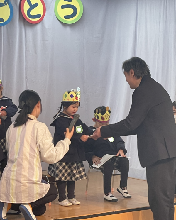 園長先生からプレゼントの絵本を貰い、嬉しそうな様子がたくさん見られました!